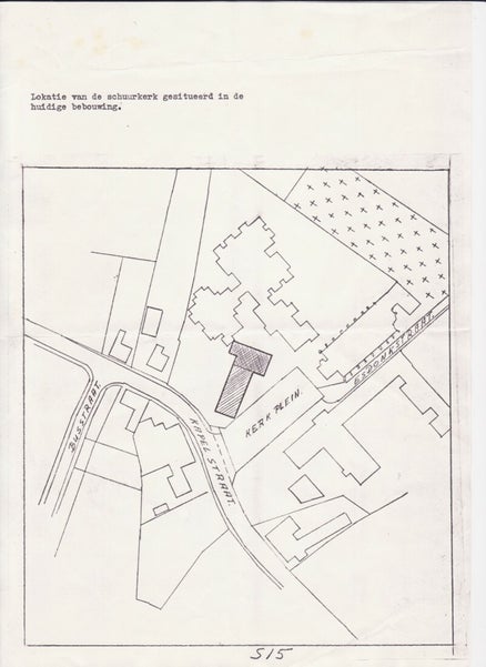Schuurkerk getekend in situatie van 1990. Foto: Collectie Tony van Geffen.
