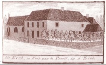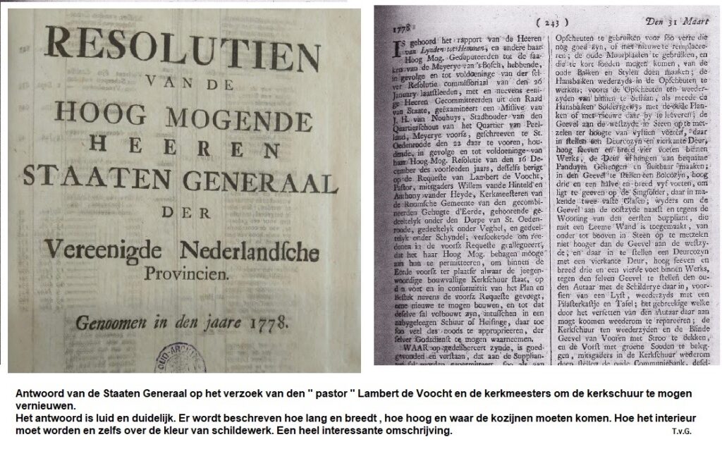 ‘In het Bisschoppelijk Archief van ‘s-Hertogenbosch lezen we hierover het volgende: ‘Zodraa de uitoefening der Godsdienst na de inval der Franschen (1672) weder was toegelaten, hebben de inwoners van d’Eerd eene Schuurkerk gebouwd…..’