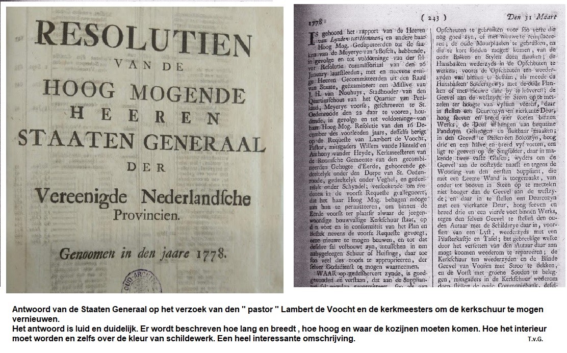 ‘In het Bisschoppelijk Archief van ‘s-Hertogenbosch lezen we hierover het volgende: ‘Zodraa de uitoefening der Godsdienst na de inval der Franschen (1672) weder was toegelaten, hebben de inwoners van d’Eerd eene Schuurkerk gebouwd…..’