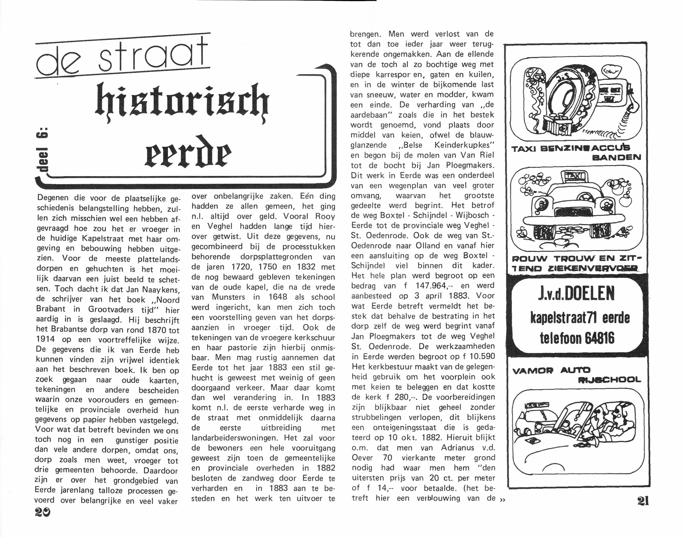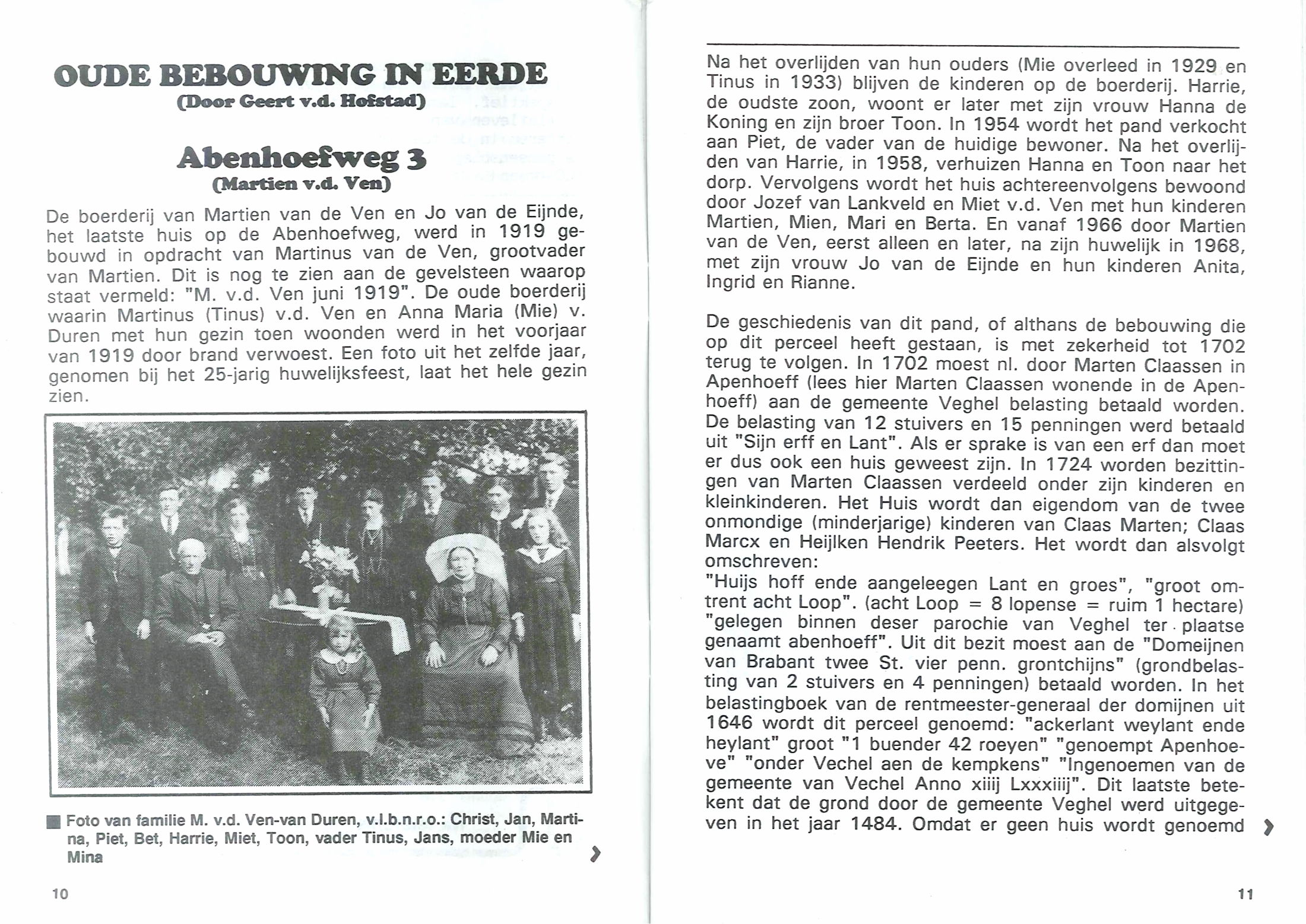Echter, een tiental jaar later, vanaf de jaren 70 tot aan begin 21-ste eeuw, verschijnt het zeer succesvolle lokale magazine “De Eerdse Klanken“. Dit blijkt een gewild podium voor een nieuwe generatie, zij het wat bescheidenere, Eerdse geschiedschrijvers als Geert van der Hofstad(GH) en Tony van Geffen(AJ). Zij pakken met pareltjes van locatie-kronieken de draad van Van Dam weer op. Nu komen voor het eerst ook minder voorstaande panden en lokaties aan bod, zoals diverse boerderijen op de Kuilen, Kempkens en de Grootdonk.