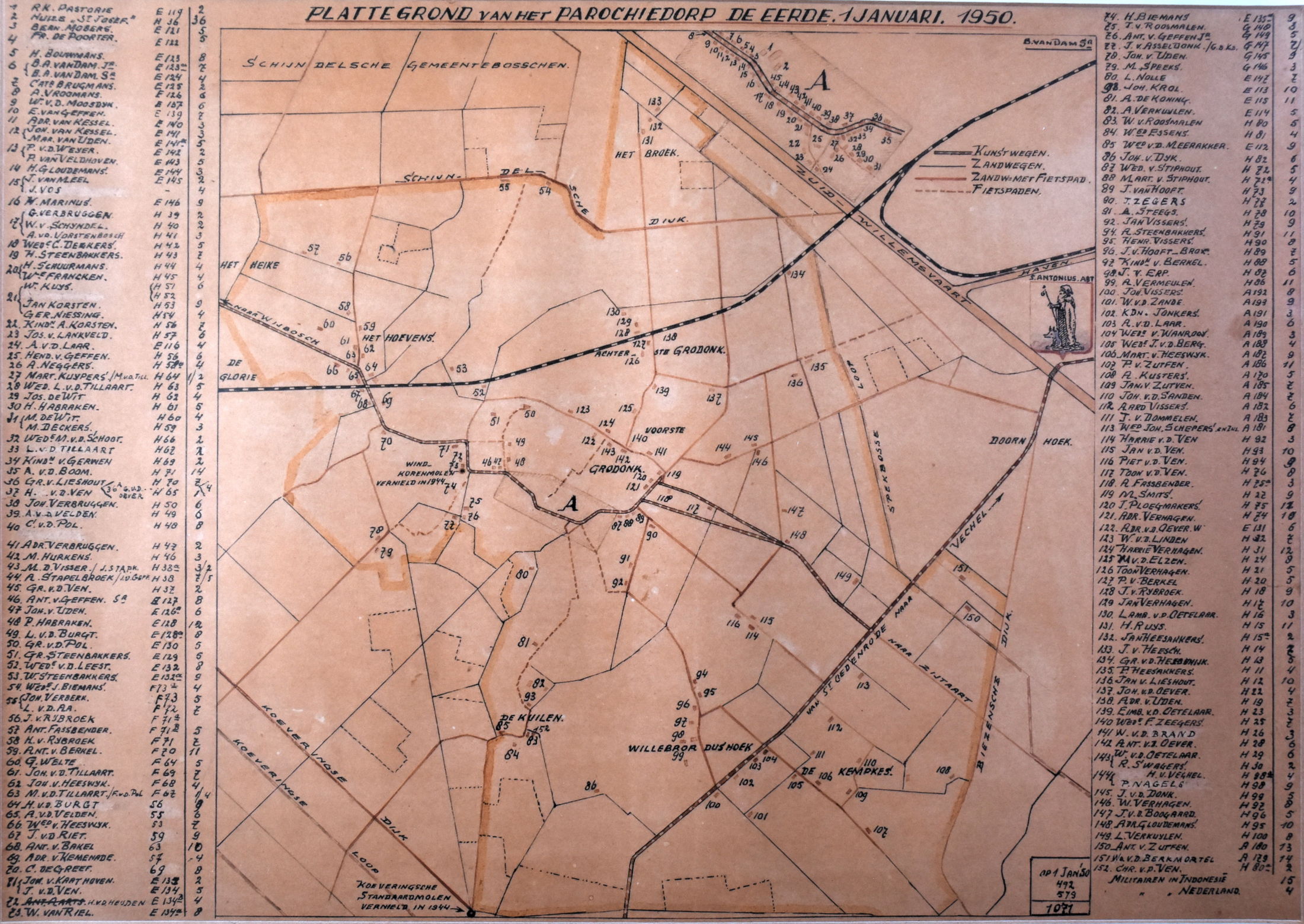 Ook onze Bernard van Dam heeft in 1950 weliswaar een eerste aanzet gemaakt tot deze systematiek, met zijn “gezinnenkaart van de parochie Eerde op 1 jan 1950”. Maar ook hij deed het pas onder flinke externe druk. De pastoor vroeg erom!