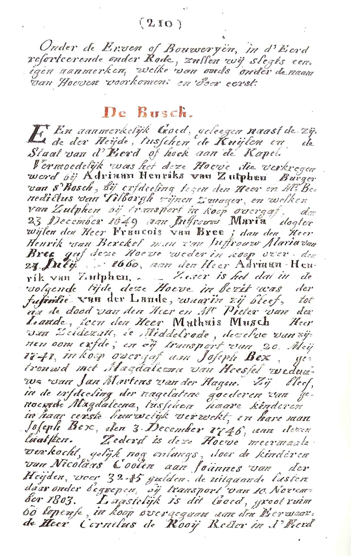 Later, in de eerste helft 20e eeuw sluit onze grootste Eerdse chroniqueur, Bernard van Dam, hier op aan met uitgebreidere bewonings-geschiedenissen van een aantal plekken zoals Hoeve Heertveld, de Antonius molen en vele anderen. In zijn schaduw zwijgen andere Eerdse geschiedschrijvers. Ook na zijn overlijden blijft het nog lang stil.