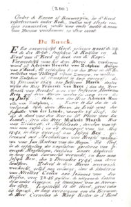 Een “locatie-kroniek” uit het Brock boek ‘Beschrijving der Vryheid St. Oedenrode’. Hier een fragment over de locatie “Busch”, de plek van de “Bushoeve”.